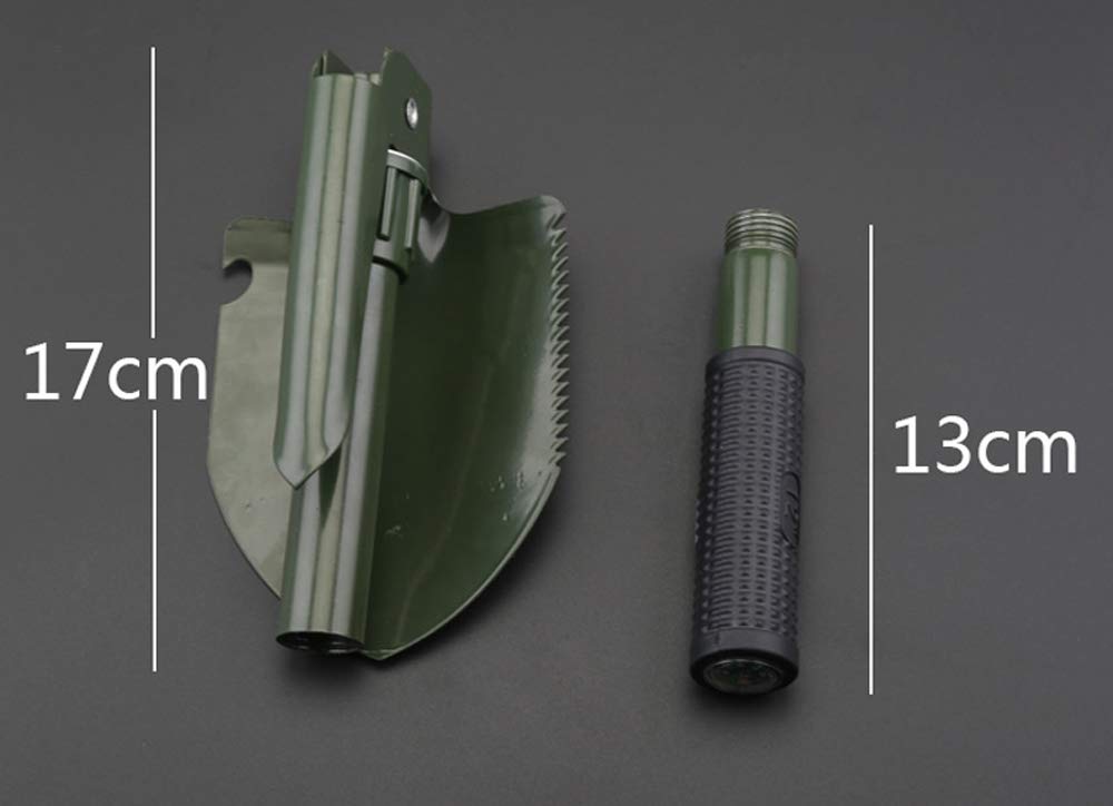 【送料無料】5徳 多機能 折りたたみ マルチツール ノコギリ 缶切り シャベル 鍬 方位磁石 スコップ アウトドア 緑色